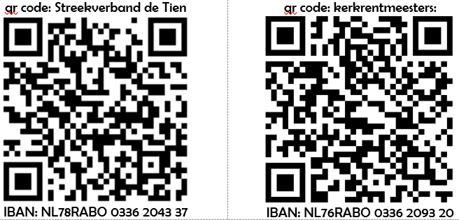 U kunt uw gift overmaken op banknummer Diaconie: NL78 RABO 0336 2043 37 ovv Streekverband De Tien.