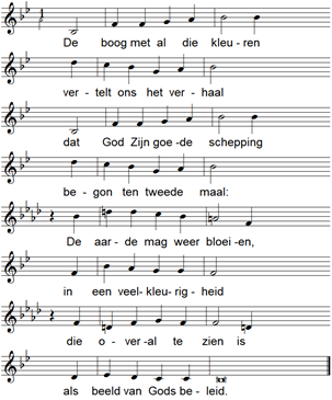 8 Ook zei God tegen Noach en zijn zonen: 9 "Hierbij sluit Ik een verbond met jullie en met je nakomelingen, 10 en met alle levende wezens die bij jullie zijn: vogels, vee en wilde dieren, met alles wat uit de ark is gekomen, alle dieren op aarde. 11 Ik sluit met jullie dit verbond: nooit weer zal alles wat leeft door het water van een vloed worden uitgeroeid, nooit weer zal er een zondvloed komen om de aarde te vernietigen. 12 En dit," zei God, "zal voor alle komende generaties het teken zijn van het verbond tussen Mij en jullie en alle levende wezens bij jullie: 13 Ik plaats mijn boog in de wolken; die zal het teken zijn van het verbond tussen Mij en de aarde. 14 Wanneer Ik wolken samendrijf boven de aarde en in die wolken de boog zichtbaar wordt, 15 zal Ik denken aan mijn verbond met jullie en met al wat leeft, en nooit weer zal het water aanzwellen tot een vloed die alles en iedereen vernietigt. 16 Als Ik de boog in de wolken zie verschijnen, zal Ik denken aan het eeuwigdurende verbond tussen God en al wat op aarde leeft. 17 Dit," zei God tegen Noach, "is het teken van het verbond dat Ik met alle levende wezens op aarde gesloten heb."