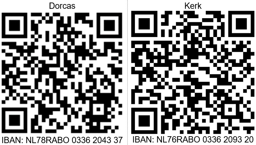Geef aan de collecte in de kerk. Of maak uw bijdrage over via de QR code of op NL78RABO 0336 2043 37 t.n.v. PG De Lier o.v.v. Dorcas.
