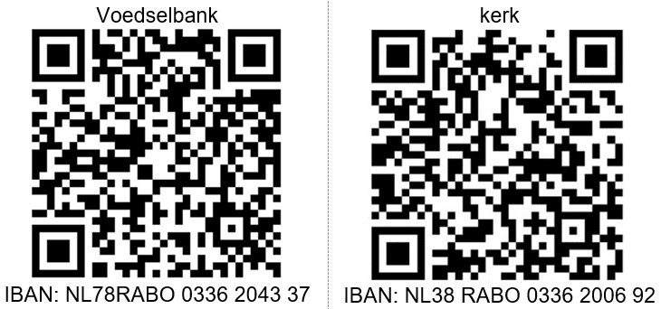 U kunt uw gift overmaken op NL78 RABO 0336 2043 37 t.n.v. Protestante Gemeente De Lier o.v.v. Voedselbank of via de QR code:
