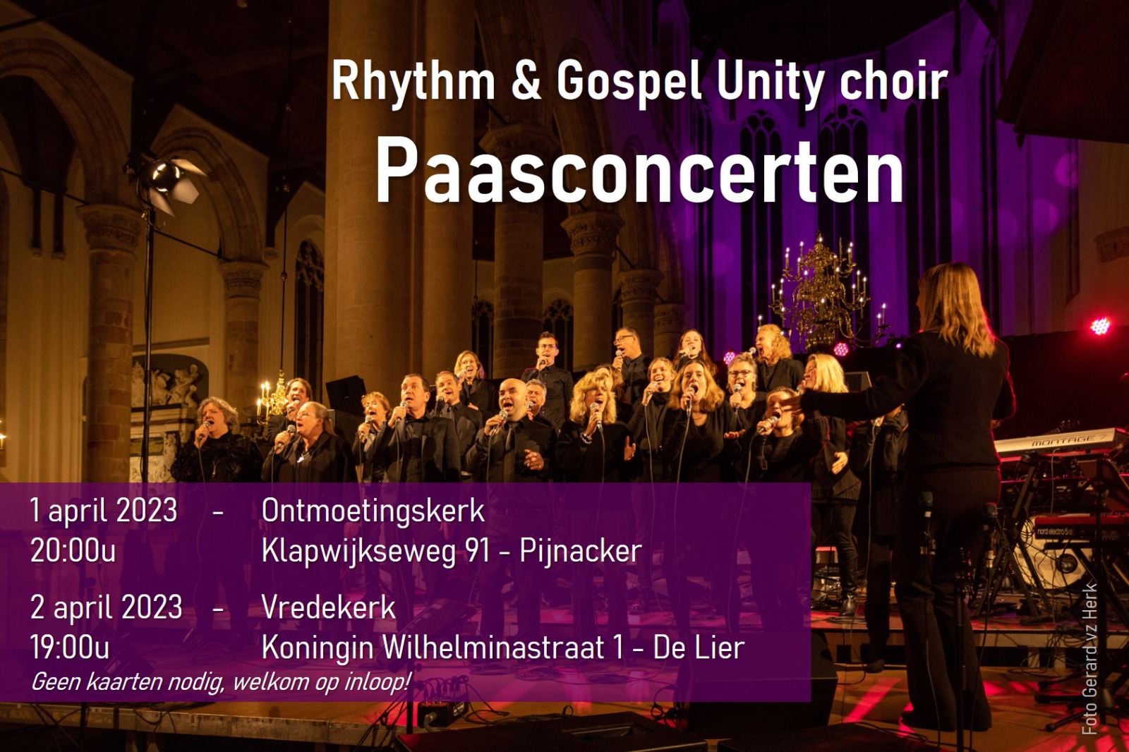 Zondagavond 2 april is gospelkoor R&G unity choir uit Delft te gast in de Vredekerk in De Lier. Zij verzorgen dan een paasprogramma met muziek en zang. Tussendoor is er samenzang en een vertelling over het levensverhaal van Jezus. R&G unity choir is een enthousiast gospelkoor met een eigen band. Het beloofd een prachtige avonddienst te worden, waar u kunt genieten, luisteren en meezingen. Met ingetogen en ook uptempo gospelsongs is deze vertolking van Jezus’ leven, zeer de moeite waard om mee te maken.