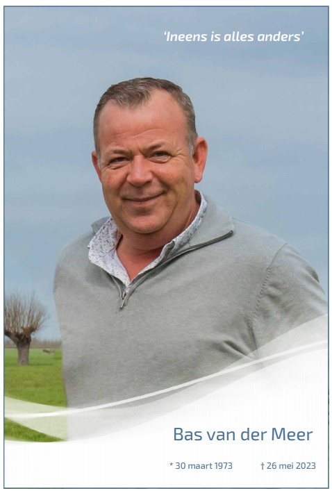 Op vrijdag 26 mei is heel plotseling overleden dhr. Bas van der Meer, in de leeftijd van nog maar 50 jaar. Bas was het maatje van Linda Vreugdenhil en de lieve pa van Nick en Jamie.