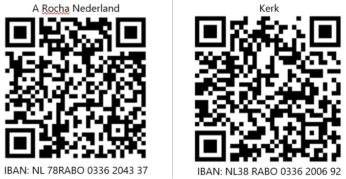 Geef aan de collecte in de kerk. Of maak uw bijdrage over via de QR code of op NL78RABO 0336 2043 37 t.n.v. a Rocha Nederland