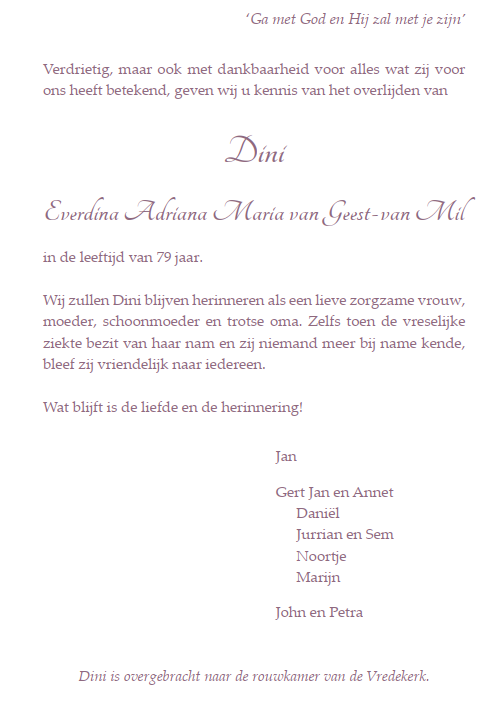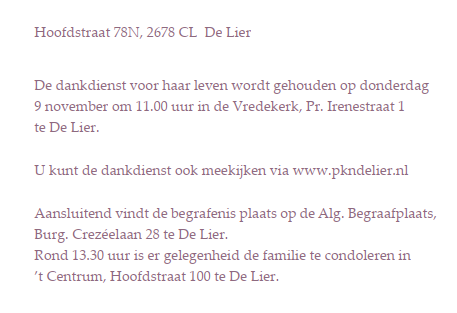 Donderdag 9 november 2023Dankdienst Dini van Geest-van MilVoorganger(s): ds. Lennart van Berkel Ouderling(en): Ria van der Mark-Maan Organist: Frank Baggerman Beamer: Paul Mosterd |