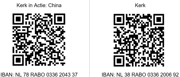 Collecte: 1. Kerk in Actie:China (toevluchtoord migranten in nood). 2. kerkrentmeesters