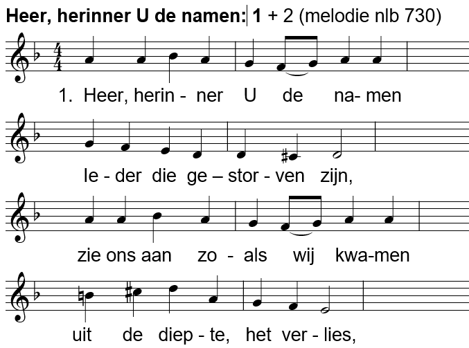 Lied: Heer, herinner U de namen (tekst Kees van der Zwaard) op de melodie van NLB 730
