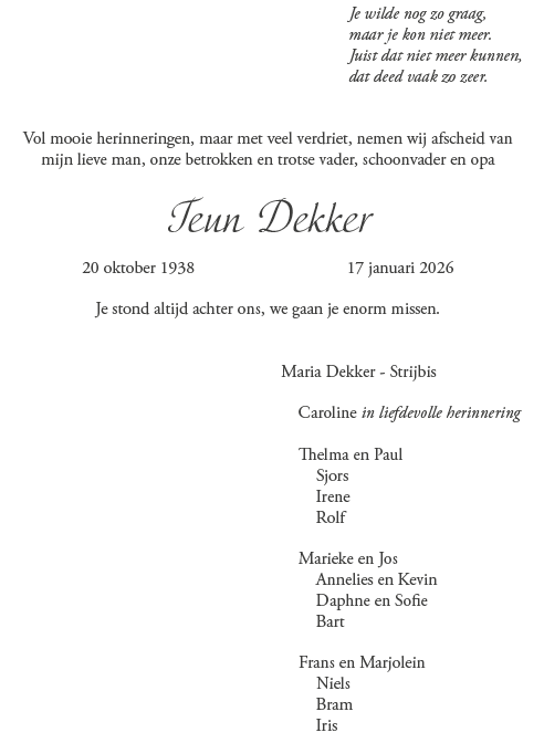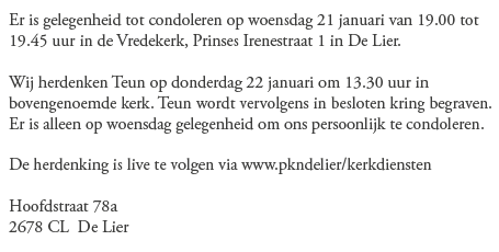 Donderdag 22 januari 2026 om 13.30 uurDankdienst Teun DekkerVoorganger(s): Gertjan Pellikaan Beamer: Ed Lijster |